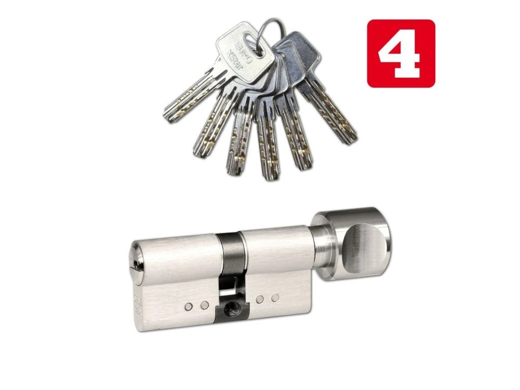 Certifikováno v bezpecnostní tríde RC4 dle CSN EN 1627:2012 Bezpečnostní 10stavítková knoflíková vložka s ocelovou tycí proti rozlomení a knoflíkem na jedné straně.Vysoká ochrana proti odvrtání pomocí 9prvků z kalené oceli.Tvoří ji 5 kolíku, 1 stavítko a 3 kuličky.Ochrana proti vyhmatání a bumpingu.Možnost společného uzávěru - SU.430.000 reálných kombinací klíče.Materiál vložky a klíčů: mosaz. Povrchová úprava: matný nikl (NI)Volně kopírovatelný klíč.Balení obsahuje: 6 ks prodloužených oboustranných klícu, 2 ks šroubu 50 + 60 mm, identifikační kartu