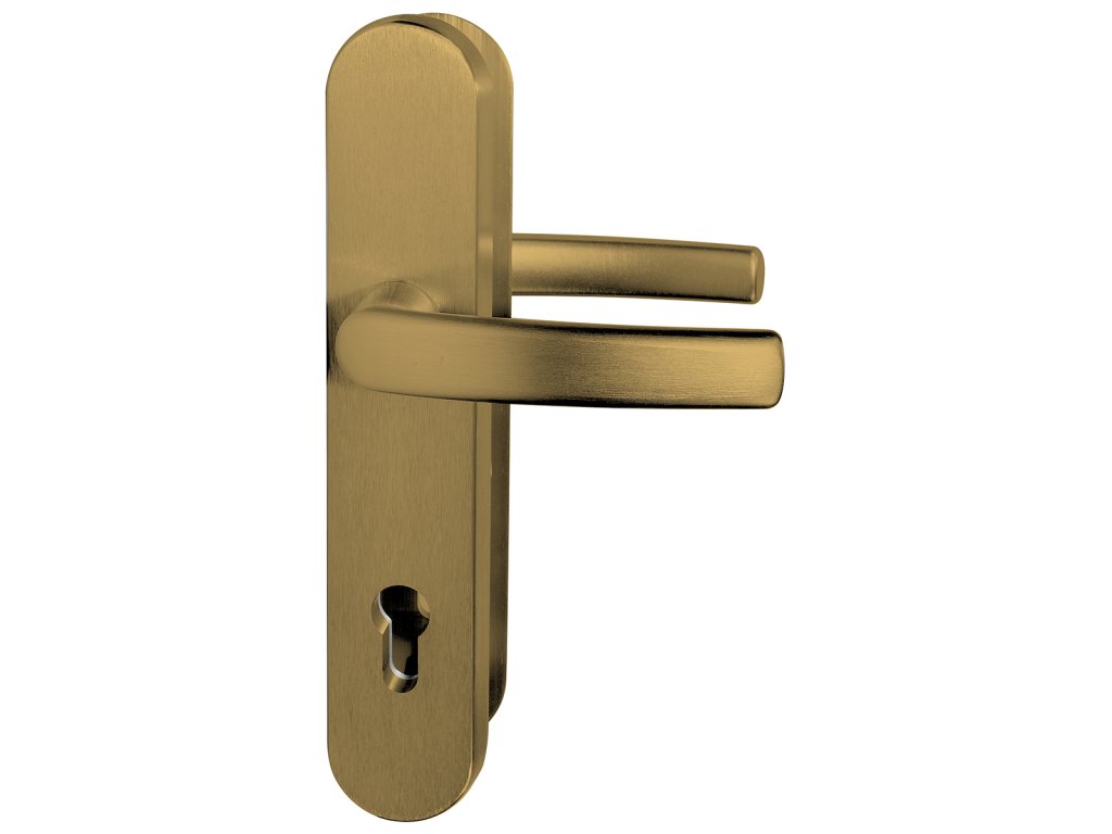 - Masivní hliníkové bezpečnostní kování v povrchové úpravě F4 - bronzový elox.