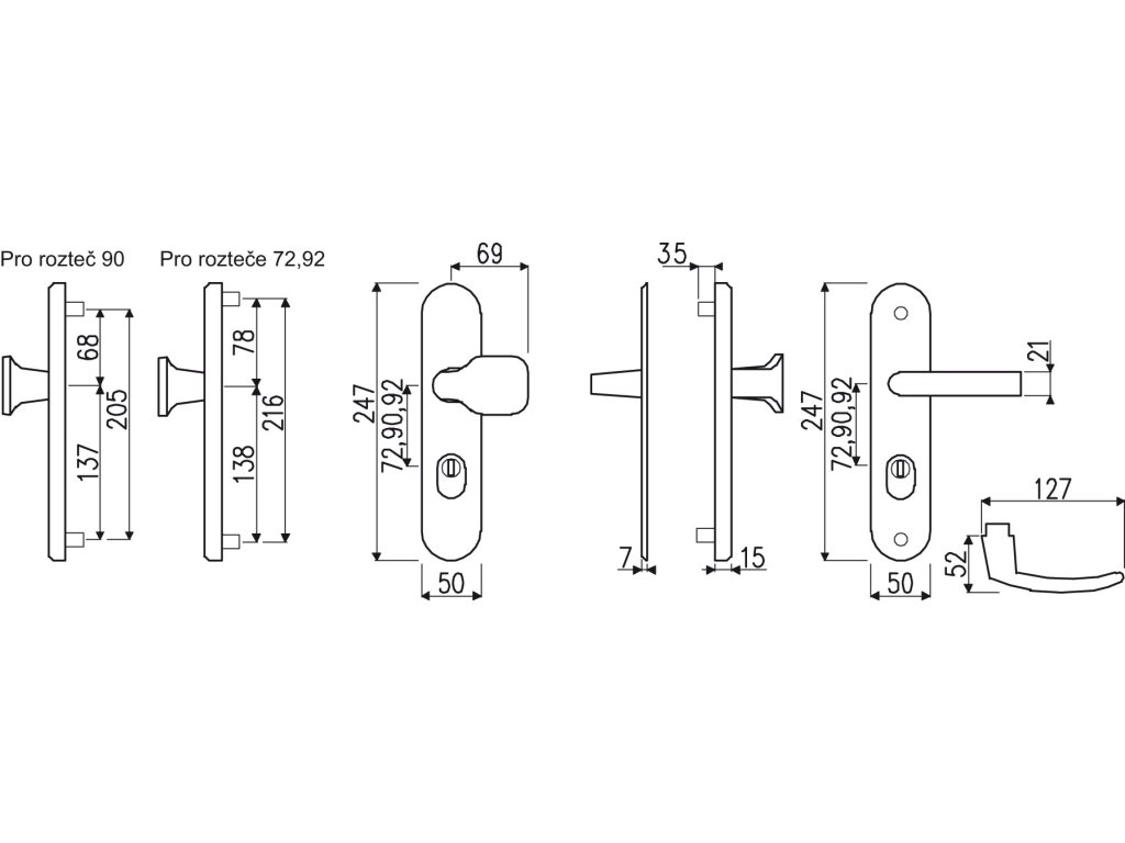 Hliníkové bezpečnostní kování - madlo/klika s překrytím vložky