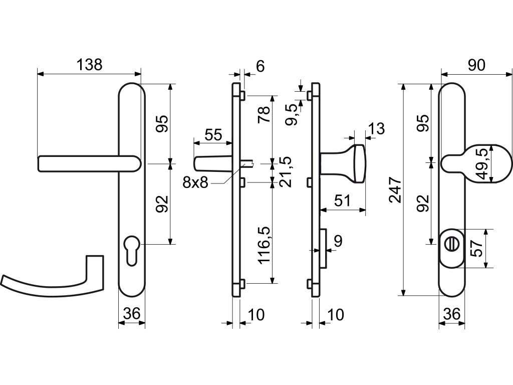 • Balení vč. čtyřhranu 8 x 8 mm, 2 x 3 ks spojovacích šroubů M6 x 90 mm a M6 x 70 mm a vrtací šablony.