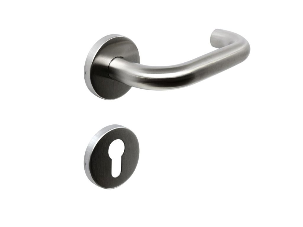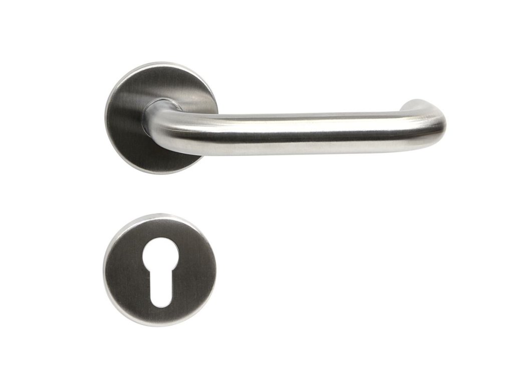 Nerezové kování na kulatých rozetách s vratnou pružinou klik