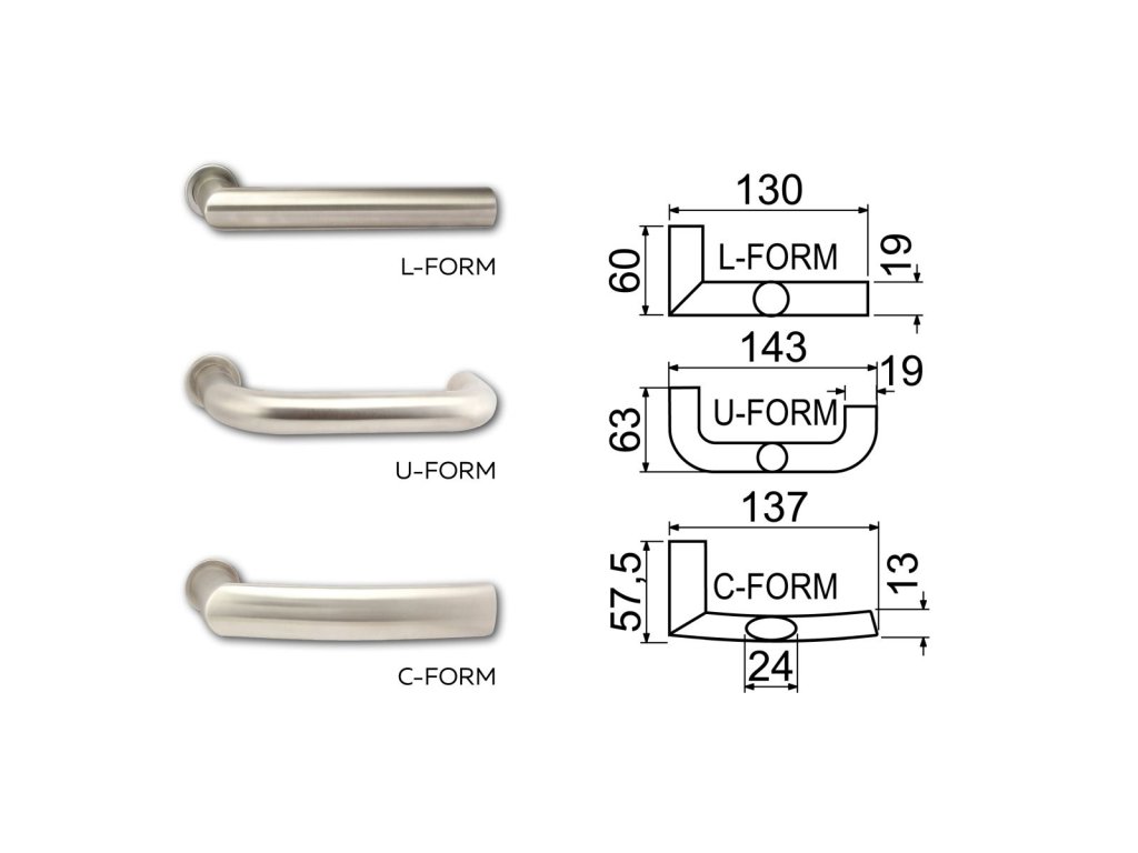 - Klika dodávána standardně ve tvaru „C-FORM“, v případě požadavku možnost dodání ve tvaru „L-FORM nebo U-FORM“