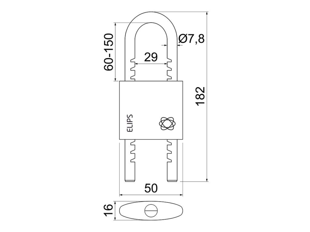 - Třmen zámku HARDENED plně vyjímatelný, nastavitelný v rozsahu 60 – 150 mm, jištěný ve dvou bodech