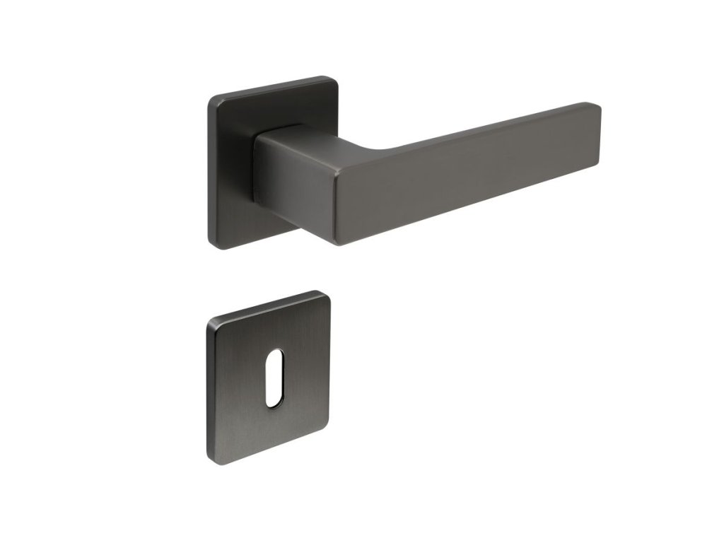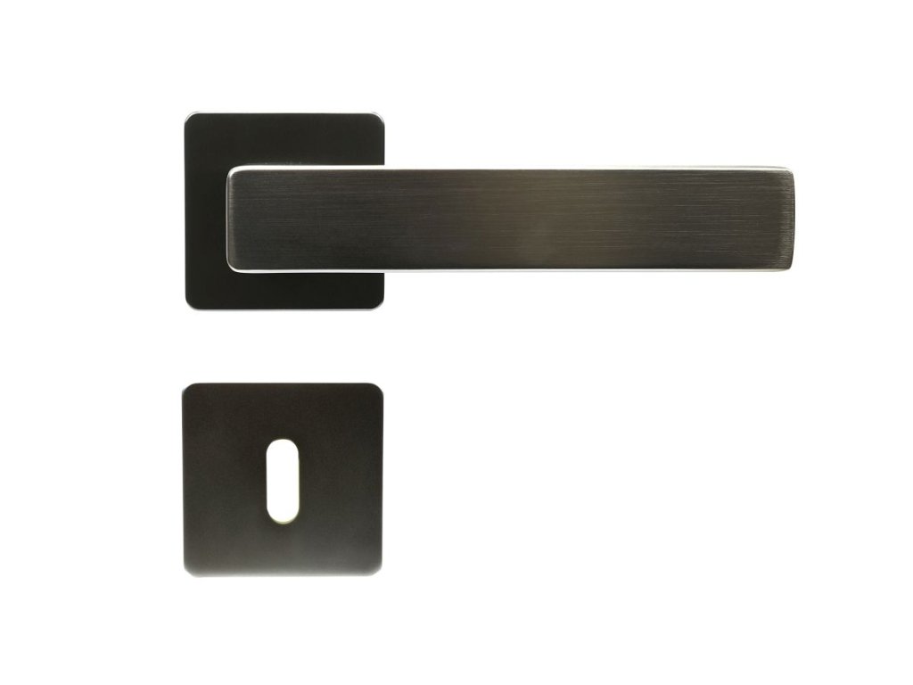 HLINÍKOVÉ KOVÁNÍ NA ČTVERCOVÝCH ROZETÁCH S VRATNOU PRUŽINOU KLIK