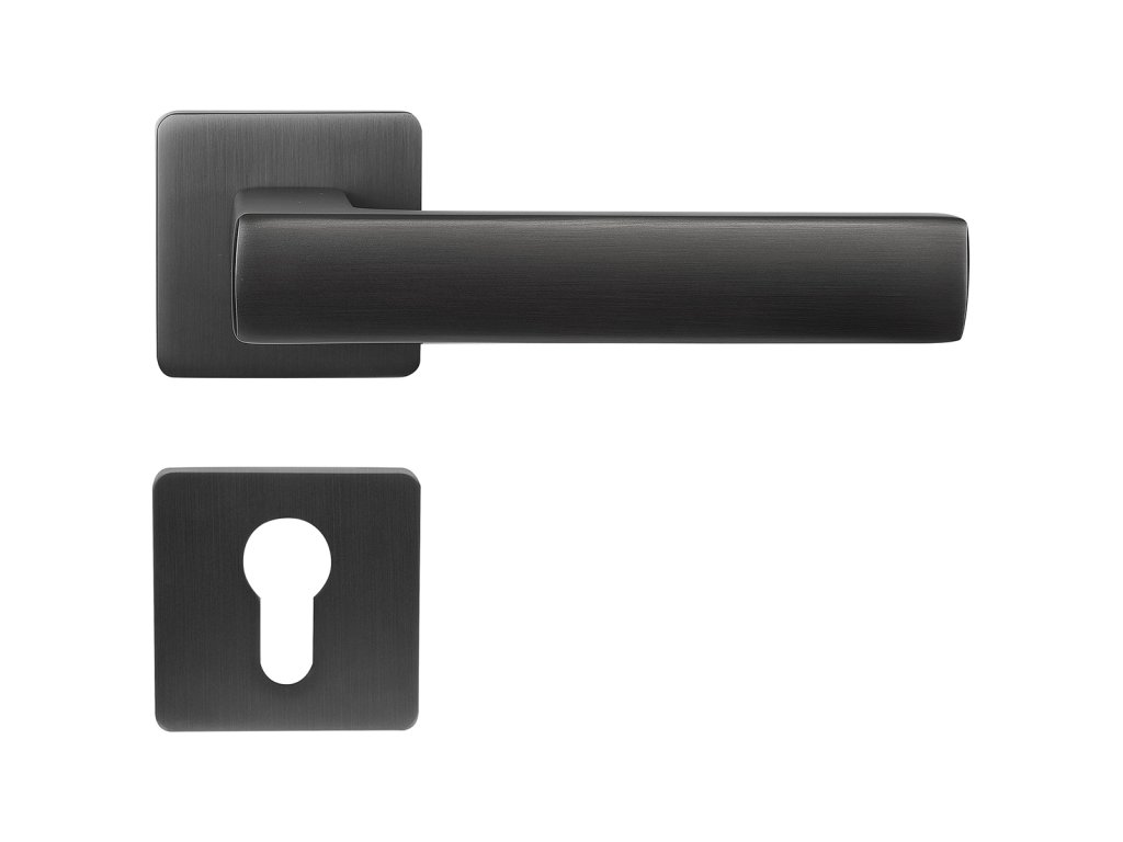 Hliníkové kování na čtvercových rozetách s vratnou pružinou klik