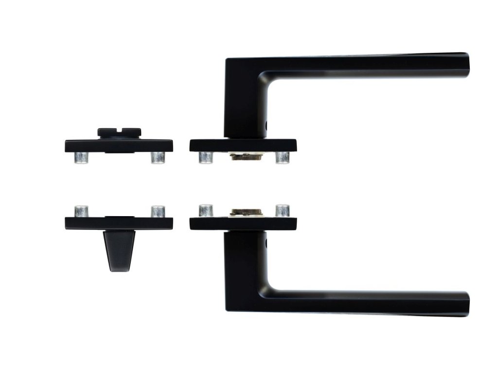 Hliníkové kování na čtvercových rozetách s vratnou pružinou klik