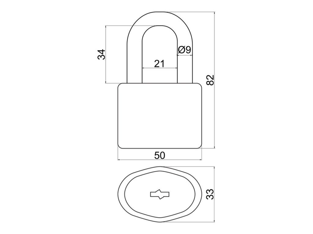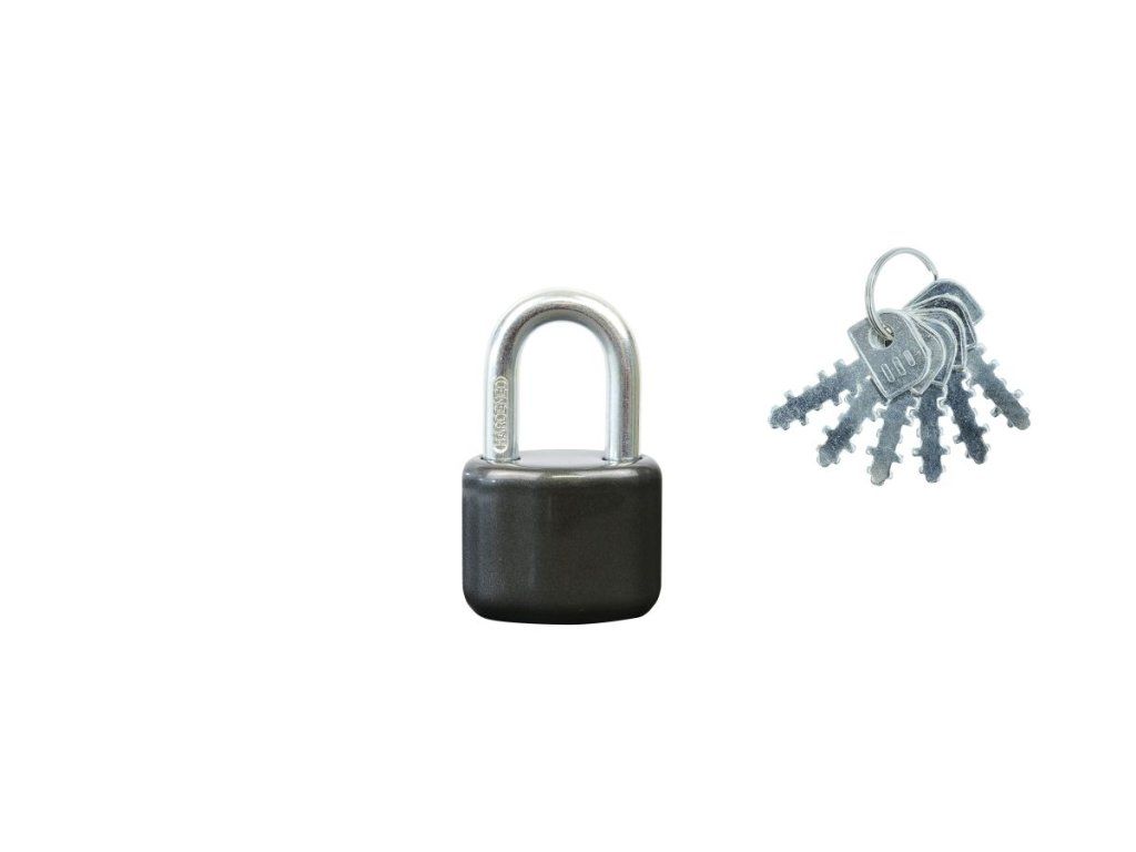 Ocelový visací zámek jednoduché lamelové konstrukce