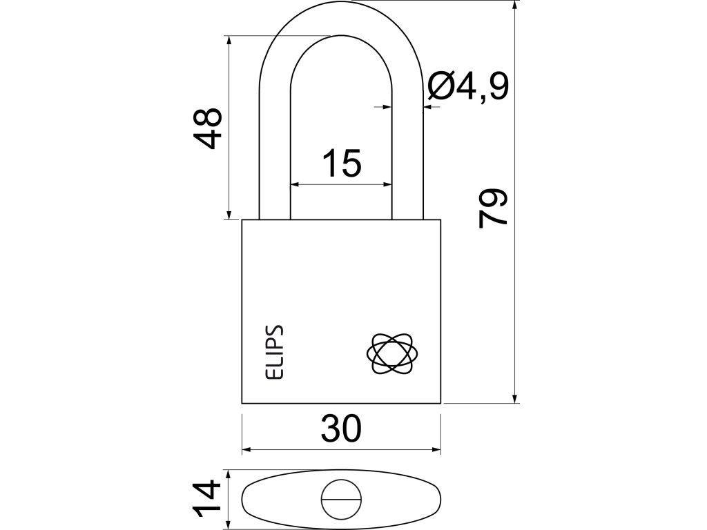 Balení: 1 ks zámku vč. 3 ks klíčů.