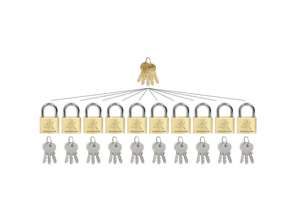 Mosazné visací zámky v systému hlavního (generálního) klíče