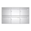 Klasický systém na stěnu z naší řady EXPRESS BOX. S přiléhavým třídílným panelem, který se přehne přes boční panely. Dešťový okraj, který vyčnívá dopředu, spolehlivě chrání poštu před povětrnostními vlivy, a to i při instalaci venku. Poštovní schránky jsou vertikálně orientované a vyhovují EN 13724. Přisazené systémy dodáváme vždy spolu s montážní lištou, která výrazně zjednodušuje připevnění na stěnu. Standardně nemají vlastní zadní stěnu.
