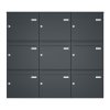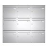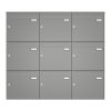 Klasický systém na stěnu z naší řady EXPRESS BOX. S přiléhavým třídílným panelem, který se přehne přes boční panely. Dešťový okraj, který vyčnívá dopředu, spolehlivě chrání poštu před povětrnostními vlivy, a to i při instalaci venku. Poštovní schránky jsou vertikálně orientované a vyhovují EN 13724. Přisazené systémy dodáváme vždy spolu s montážní lištou, která výrazně zjednodušuje připevnění na stěnu. Standardně nemají vlastní zadní stěnu.
