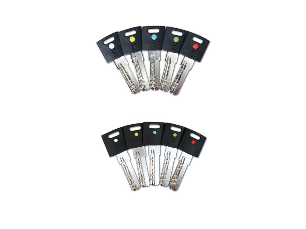 Příslušné klíče každé vložky obsahují vždy 5 různých barev pinů: červená (CRV), modrá (MOD), zelená (ZEL), žlutá (ZLU), bílá (BIL)