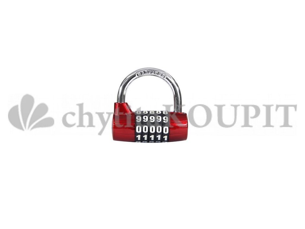 Kódový visací zámek ze slitiny zinku-červený. Snadná změna kódu. Třmen zámku "HARDENED".