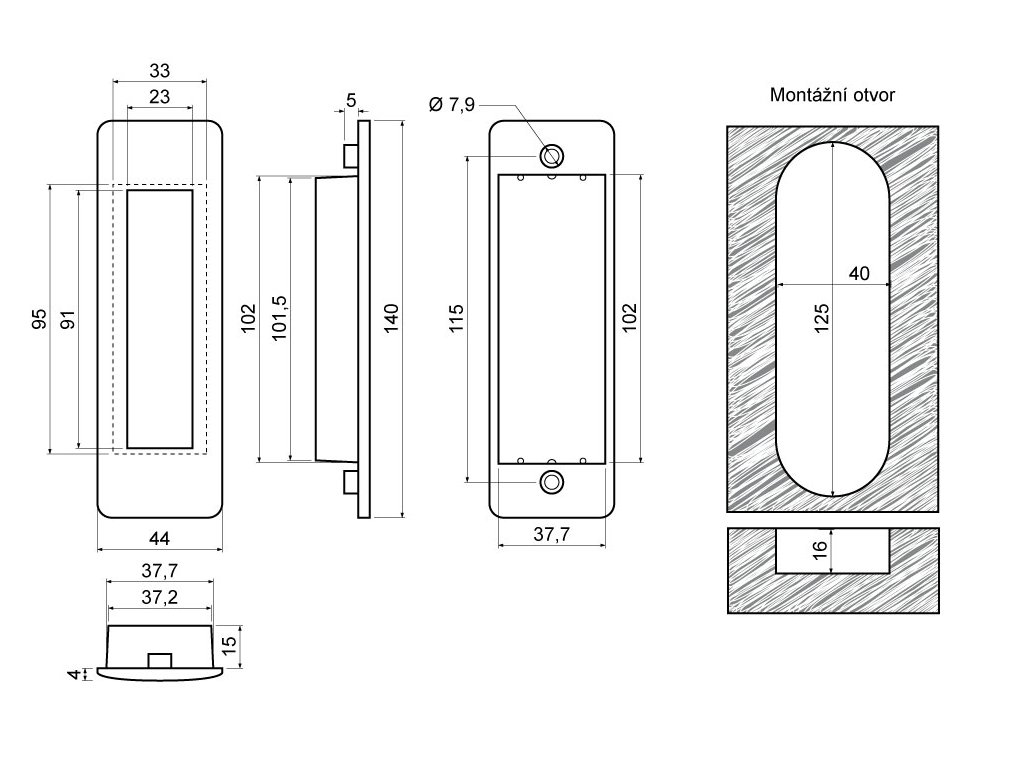 - Rozměry š/v/h: 44 x 140 x 19 mm