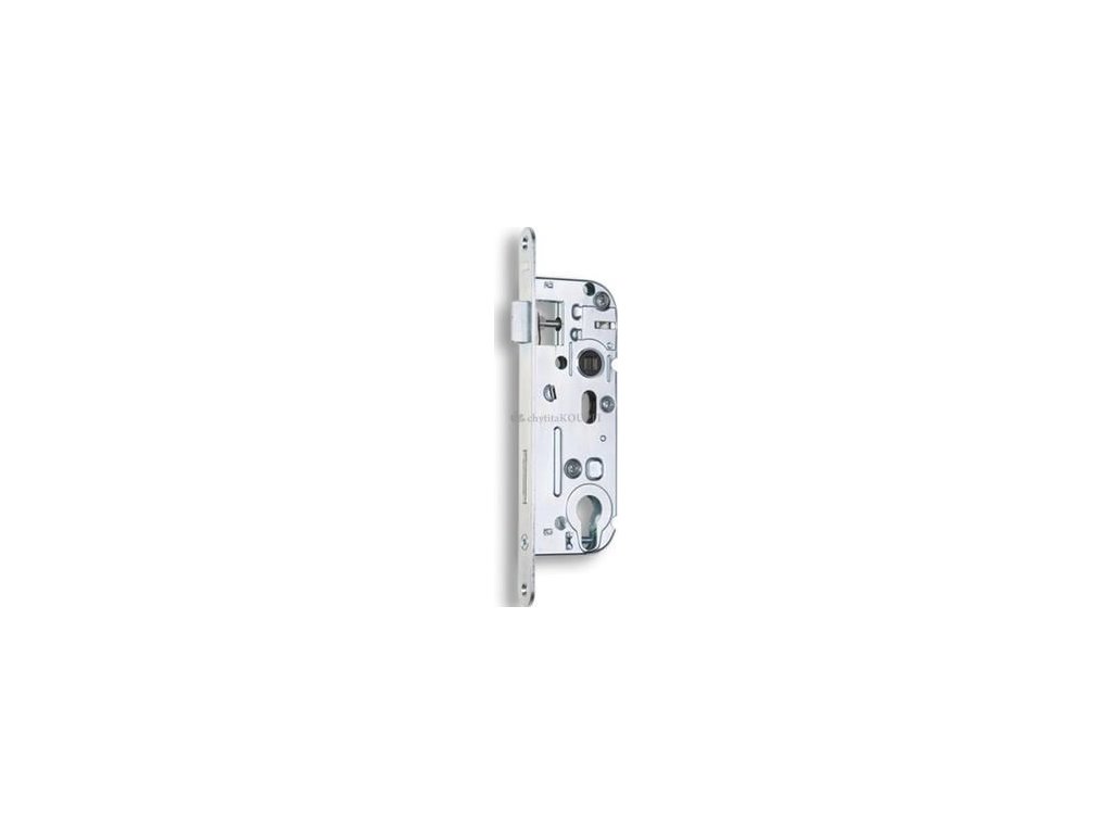Dvouzápadový zadlabací zámek Hobes 02-04 P-L určeno pro cylindrickou vložku PZ s převodem (střelka ovládaná klikou i klíčem) s otvory pro dělené štítky.